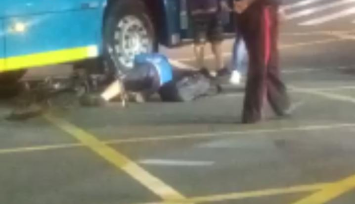Um acidente envolvendo um ônibus e um ciclista deixou uma pessoa ferida na noite desta quarta-feira (20), em Bragança Paulista. O homem ficou caído ao lado do veículo.