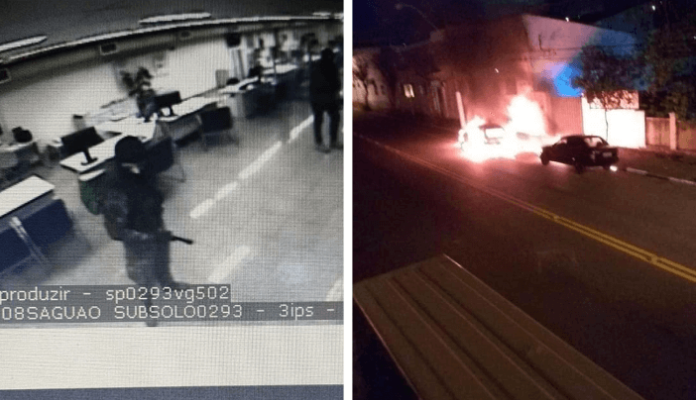 Uma quadrilha armada com fuzis fez diversas explosões em um banco, incendiou carros e atirou contra policiais na madrugada desta terça-feira, 2, em Bragança Paulista. Segundo a Polícia Militar, os criminosos não conseguiram levar dinheiro do banco.