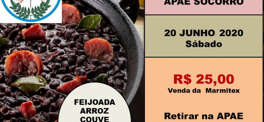 A APAE – Associação de Pais e Amigos dos Excepcionais de Socorro realizará, no dia 20 de junho, o evento ‘Feijoada Solidária’ para a arrecadação de fundos para a instituição.