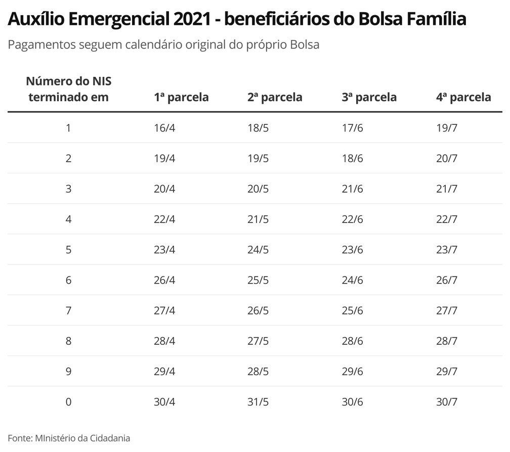 Segundo o Ministério da Cidadania, 9,77 milhões de famílias receberão a terceira parcela do Auxílio Emergencial 2021.