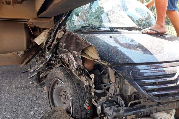 De acordo com a Polícia Rodoviária Federal (PRF), o acidente aconteceu no km 41 por volta das 11h50 no sentido São Paulo. O carro trafegava pela via quando a carreta empurrou ele contra o canteiro.