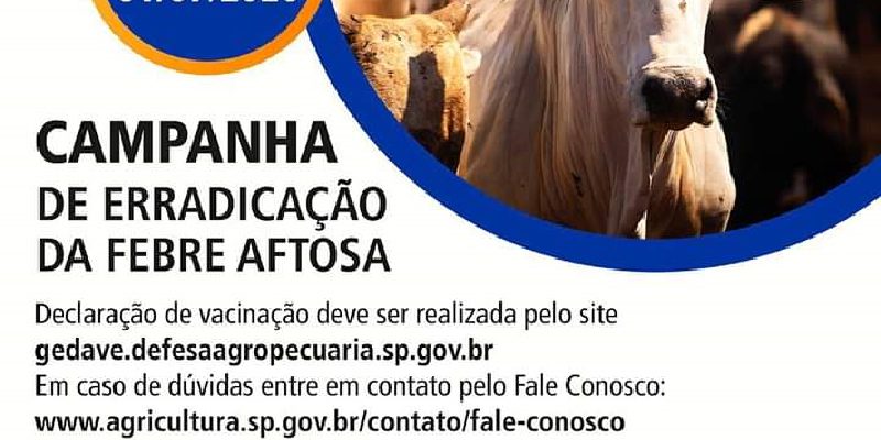 A Coordenadoria de Assistência Técnica Integral, o Cati de Socorro, informa aos pecuaristas que a aquisição das doses, sem multa, e realização da vacinação contra febre aftosa deve ser feita até 31 de maio.
