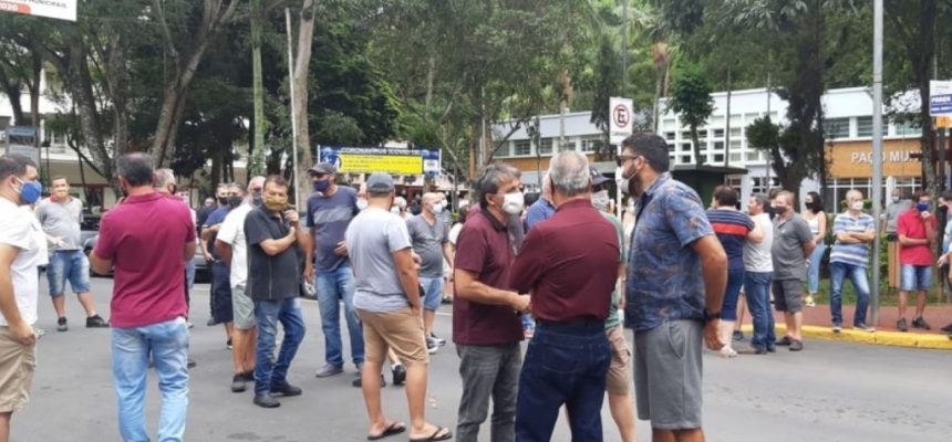 Os comerciantes de Serra Negra protestaram na manhã deste sábado (26) contra o retorno da cidade à fase vermelha, a mais restritiva do Plano São Paulo, determinada pelo governo paulista e confirmada por decreto municipal.