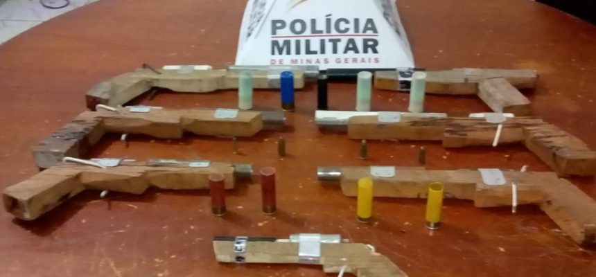 Sete armas artesanais, além de cartuchos e munições foram apreendidas pela Polícia Militar no bairro São Geraldo, em Pouso Alegre, MG, na noite desta terça-feira (28).