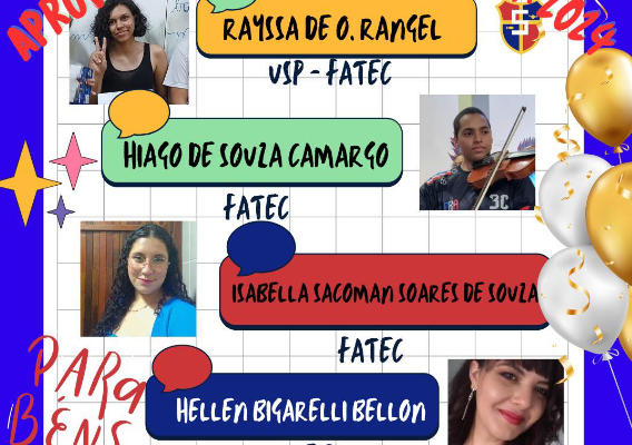 Dentre os aprovados, temos: Rhayssa de Oliveira Rangel – História – USP/SP; Helen Bigarelli Bellon – Biologia – Unesp/Rio Claro; Isabella Sacoman Soares de Souza – Análise e Desenv. de Sistemas – Fatec/Brag. Pta e Hiago de Souza Camargo – Gestão de Tecnologia da Informação – Fatec / Itapira. Houve ainda a aluna Luna Bernardi de Marco Porto Mendonça, aprovada em ‘Artes Cênicas’ pela Universidade Federal de Ouro Preto.