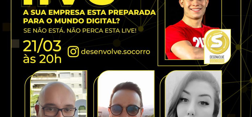 A live será no instagram do Desenvolve Socorro, com apresentação de Bruno Faria e a presença dos profissionais de Marketing Diogo Franco, Lucas Caval e Kira Tonello.