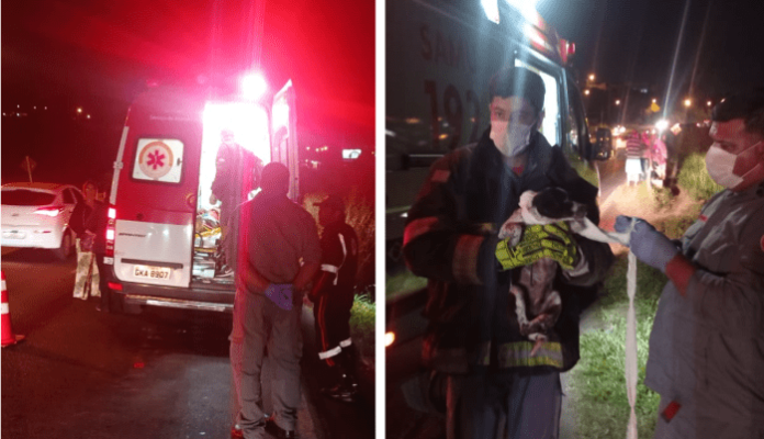 A Equipe do Serviço de Atendimento Móvel de Urgência-SAMU, prestou os primeiros atendimentos ao homem e o Corpo de Bombeiros realizou os primeiros-socorros ao cachorro, até a chegada de uma equipe do Samu Vet.