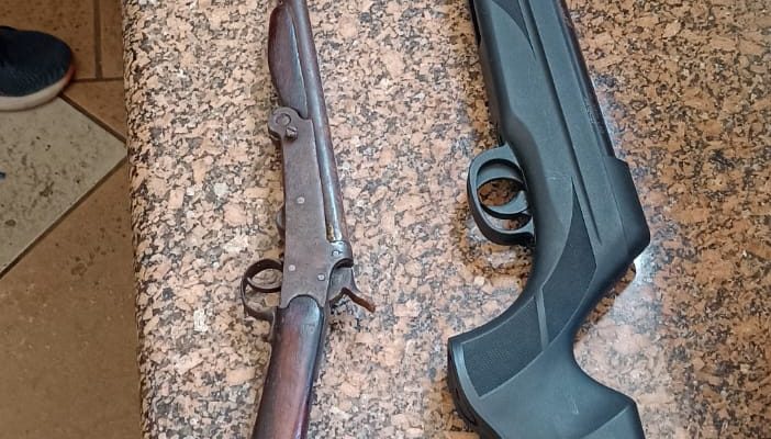 Pelo local, encontrava-se o senhor L, em busca pessoal nada de ilícito foi encontrado, porém ao ser vistoriado o seu veículo, os policiais militares lograram êxito em localizar dois armamentos, sendo eles, uma carabina de pressão 5.5 CBC e uma espingarda calibre 36 sem numeração de série, bem como marca do fabricante.