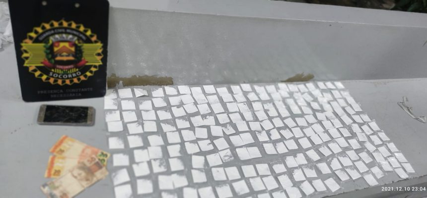 Desta forma, os GCMs fizeram o patrulhamento no local e assim que localizaram a motocicleta Yamaha parada esperando alguém, efetuaram a abordagem, onde foi localizado durante a revista pessoal no homem com as iniciais E.F.P, a quantia de 200 papelotes de cocaína embalados pronto para a venda, $90,00 em notas diversas e um celular. A pessoa que iria receber a entrega não foi localizada.