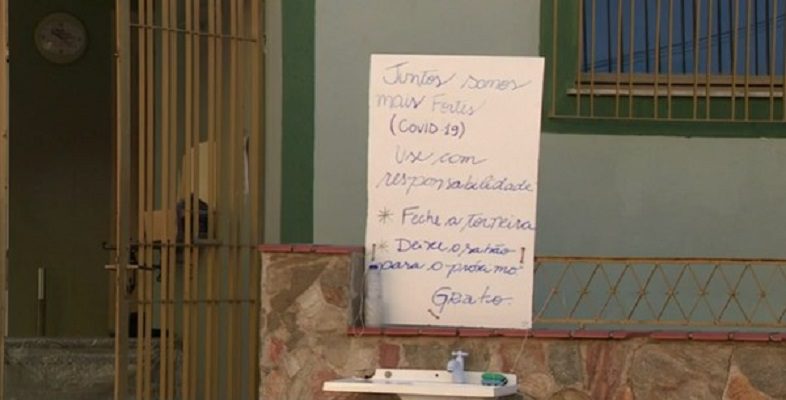 No mesmo local, o morador instalou também uma placa que conscientiza os usuários e orienta sobre o uso da pia comunitária, que diz o seguinte: Juntos somos mais fortes, use com responsabilidade. Feche a torneira e deixe sabão para o próximo.