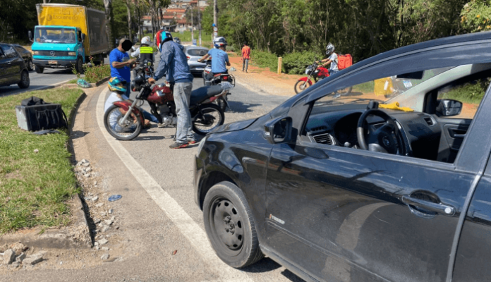 Um motociclista que não teve a identidade divulgada, ficou ferido após ser atingido por um carro no início da tarde desta quarta-feira (27), na rotatória que dá acesso ao bairro Parque dos Estados, em Bragança Paulista.