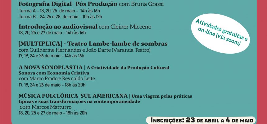 PROGRAMAÇÃO CULTURAL DO MÊS DE MAIO DE 2021 – BLOCO 2