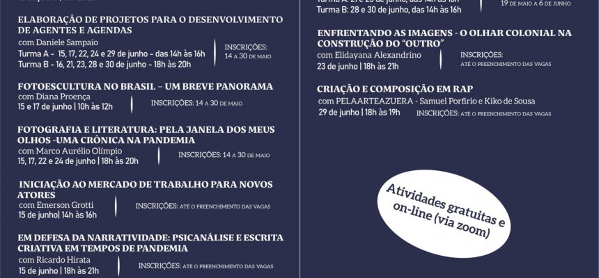 Datas e horários: 7, 10, 14, 17, 21, 24 e 28 de junho, das 18h às 20h