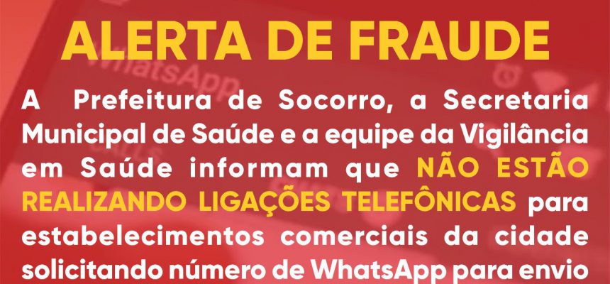 A Prefeitura de Socorro informa que não realiza ligações telefônicas para estabelecimentos comerciais solicitando número de WhatsApp para envio de documentos, fiscalização ou autuação. Durante a semana, diversos estabelecimentos comunicaram à Prefeitura sobre essa prática. Em alguns casos, a abordagem aconteceu por meio das redes sociais.