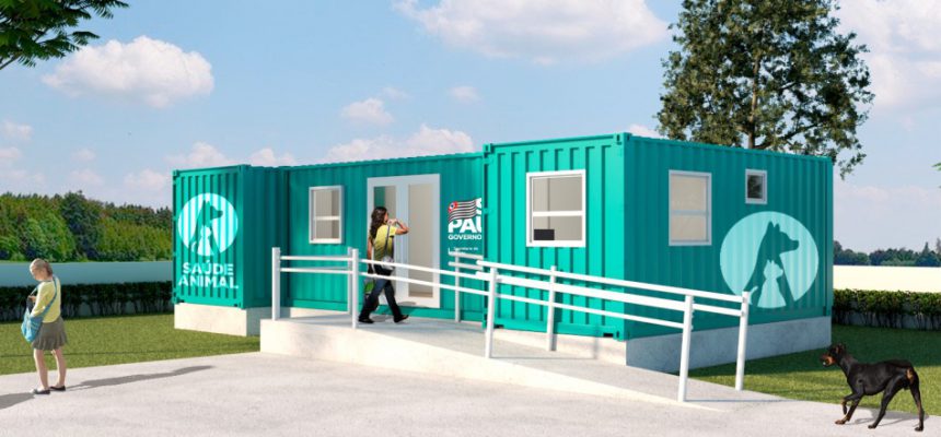 O consultório veterinário será formado por quatros contêineres, e será oferecido serviços gratuitos para cães e gatos, como consultas clínicas, vacinação, castração e adoção responsável.