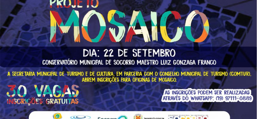 A Secretaria de Turismo e de Cultura de Socorro, em parceria com o Conselho Municipal de Turismo – COMTUR abrem inscrições para oficinas gratuitas de mosaico. O objetivo das oficinas é incentivar os participantes a terem uma nova profissão, além de colocar em prática um projeto de mosaico no espaço do Mirante do Cristo.