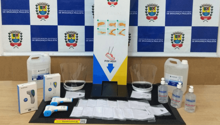 A Secretaria de Educação adquiriu tapetes sanitizantes, material de limpeza, termômetros, totens com álcool em gel, máscaras face shield para funcionários, além de máscaras para alunos que foram confeccionadas em parceria com o Fundo Social de Solidariedade do Município.