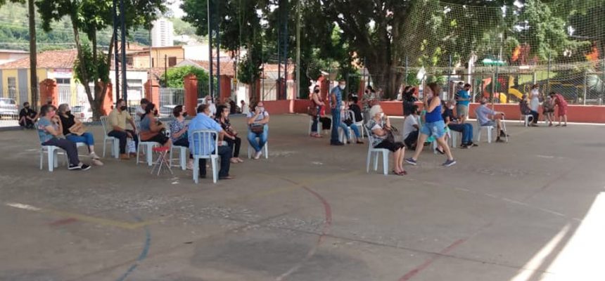 Senhas estão sendo distribuídas e os idosos estão aguardando em cadeiras, em local reservado do sol, arejado e com bastante distanciamento físico. A vacinação só tem início às 8h da manhã, portanto, não há necessidade de chegar antes do horário, principalmente porque já existe uma quantidade de doses destinadas para a vacinação deste grupo.